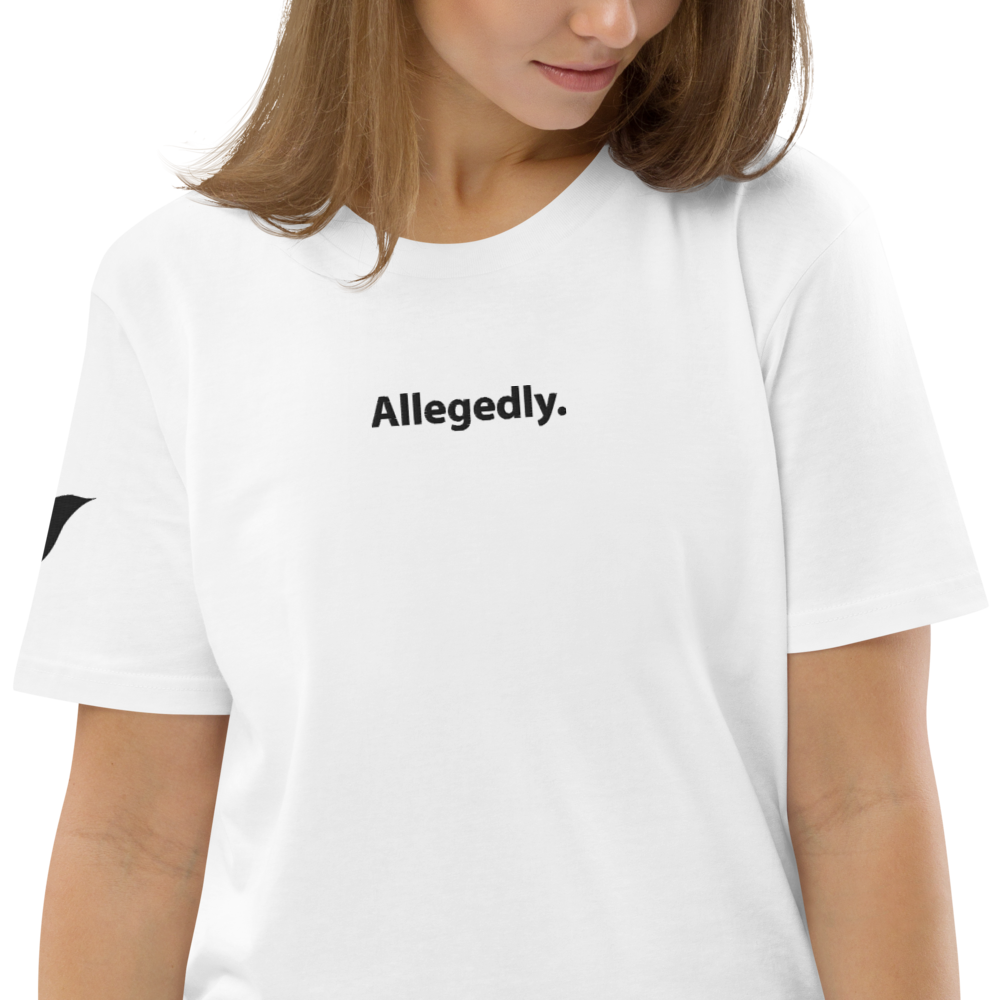 The ultimate excuse. The law states that as long as something can't be proven, you need to prefice any and all statements with 'Allegedly. This means that with this T-shirt you are always prepared. Whenever someone accuses you of something, simply assert your dominance by pointing at your chest, flip a bird and stride out the door glamourosly. All credits go to TTRPGToria on TikTok, give her some followlove!